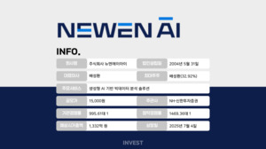 생성형 인공지능(AI) 기반 빅데이터 분석 전문기업 뉴엔에이아이(뉴엔AI)가 23~24일 양일간 일반투자자 대상 공모주 청약을 마쳤다. 이번 청약은 최근 AI 산업에 대한 정부 정책 지원과 시장의 관심이 맞물리며 투자자들의 이목이 집중됐다.대표 주관사인 NH투자증권에 따르면 뉴엔AI는 공모 청약 결과, 총 26만 건 이상이 접수되며 1,469.36대 1의 경쟁률을 기록했다. 이에 따른 증거금은 6조 1,140억 원이다. 상장 공모는 222만 주의 전량 신주로 구성됐으며, 이 중 25%에 해당하는 55만 5,000주가 일반투자자에게