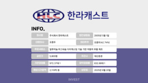 한라캐스트가 수차례의 증권신고서 정정이라는 난항을 뚫고 내일(20일) 코스닥 시장에 입성한다. 고성능 알루미늄·마그네슘 다이캐스팅 부품 전문기업인 한라캐스트는 기관투자자 대상 수요예측과 일반 청약에서 높은 경쟁률을 기록했다.한라캐스트는 기관투자자 대상 수요예측에서 2,401개의 기관이 참여해 832.88대 1의 경쟁률을 기록했다. 참여 기관 중 98.5%가 공모가 희망밴드(5,100~5,800원) 상단을 제시하며 공모가는 5,800원으로 확정됐다. 의무보유 확약 비율은 총수량 대비 5.8%에 그쳤다.투자열기는 일반 투자자 청약으로도