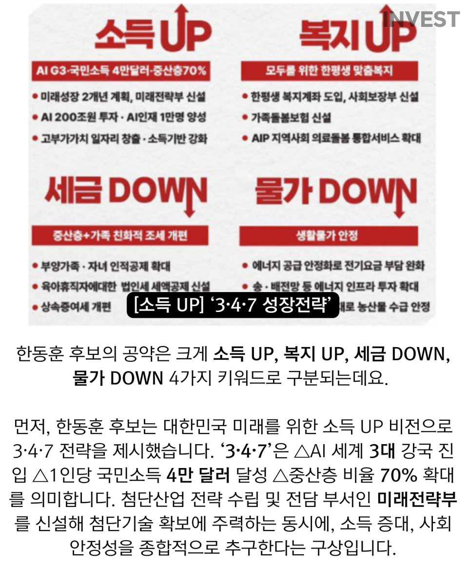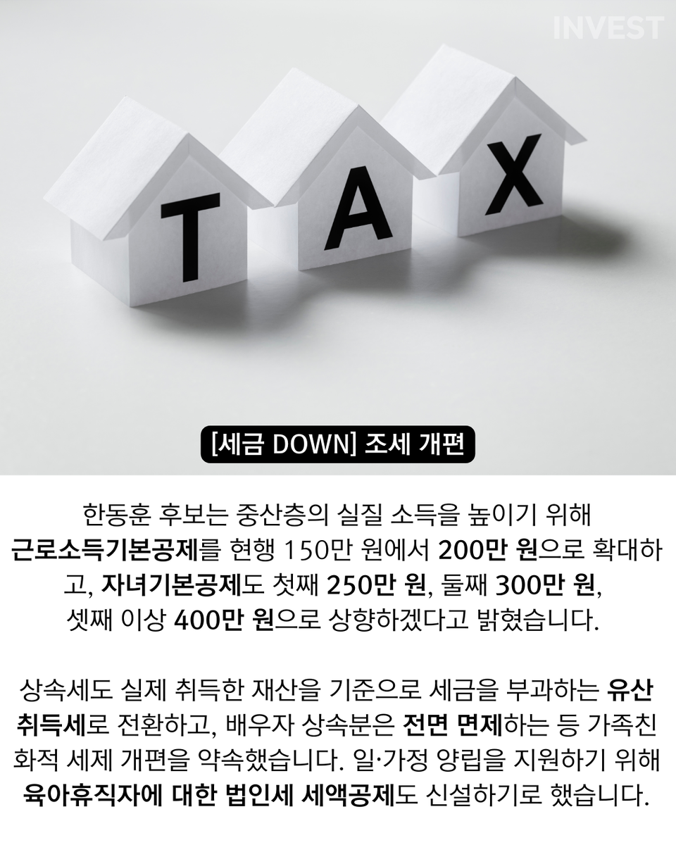 [한동훈 공약] 한동훈 '중산층' 위한 3·4·7 성장전략 공개... 기본공제 확대·유산취득세 전환·육아휴직자 법인세 공제 신설